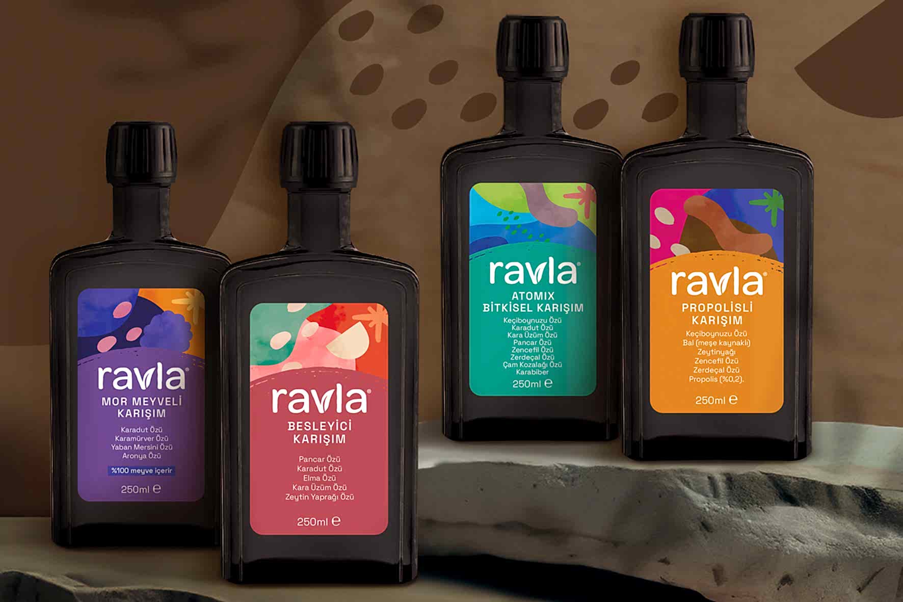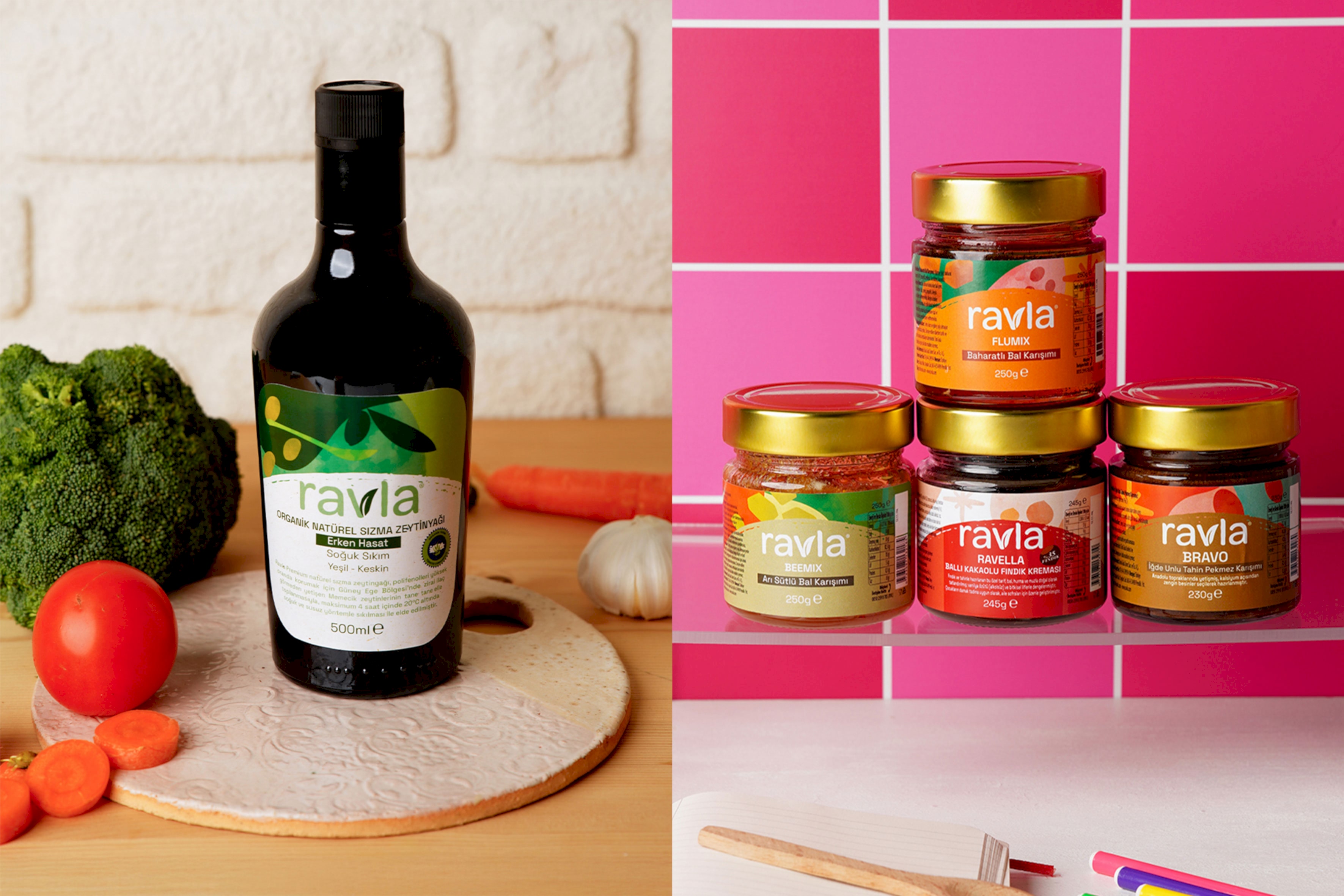 Orhan Irmak Tasarim designed the packagings for Ravla’s wide range of products. Ravla is a superfood brand offering a wide spectrum of products, from organic olive oil to herbal blends and natural oils. The brand particularly appeals to conscious mothers who prioritize their children's healthy and natural nutrition. The brand’s founder, chemist Özlem Erarslan, who conducts studies on food chemistry and phytotherapy, says: “We strive to offer our products in their purest, unprocessed, and most natural form. We believe superfoods are not only nourishment, but also a source of better quality of life.”